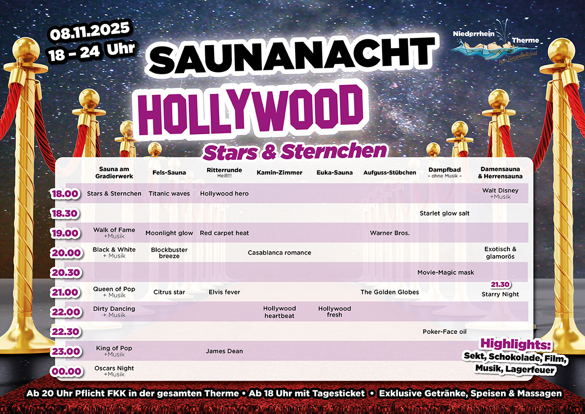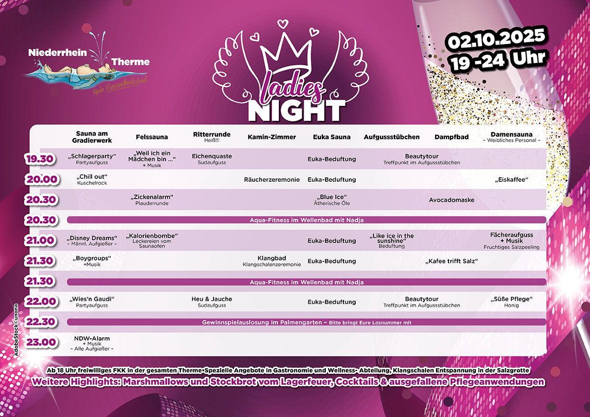 Willkommen zur ersten VIP-Nacht in der Niederrhein-Therme – das exklusive Saunaevent inklusive Partyzone im Wellenbad!