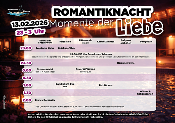 Entdecke unsere beliebten Sauna-Highlights wie Romantik-Nacht oder unsere abwechselnden Sauna-Mottotage! Auch die Kindersaunatermine bieten viel Spaß 💦