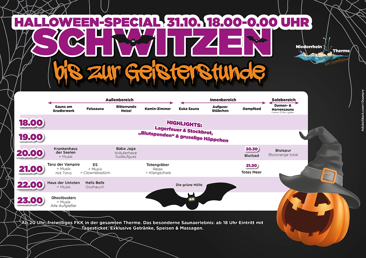 Stehen aktuell leider noch nicht für 2021 fest. Möchtest Du eine Benachrichtigung erhalten melde Dich gerne in unserem Newsletter an. Dann verpasst Du künftig keines unserer tollen Spar-Angebote und erhältst viele weitere Informationen direkt aus der Therme. Oder Du schickst uns eine E-Mail an This email address is being protected from spambots. You need JavaScript enabled to view it. Betreff "Anmeldung Sauna Exklusiv".