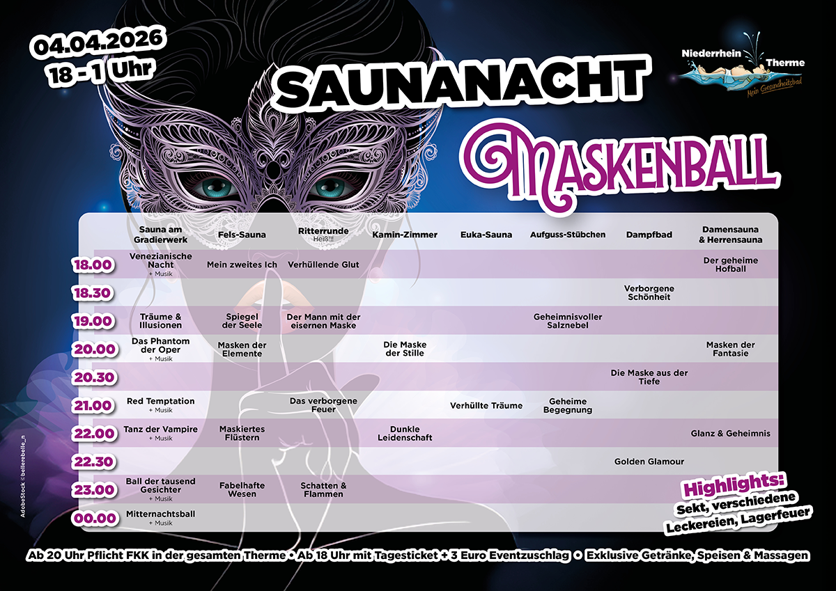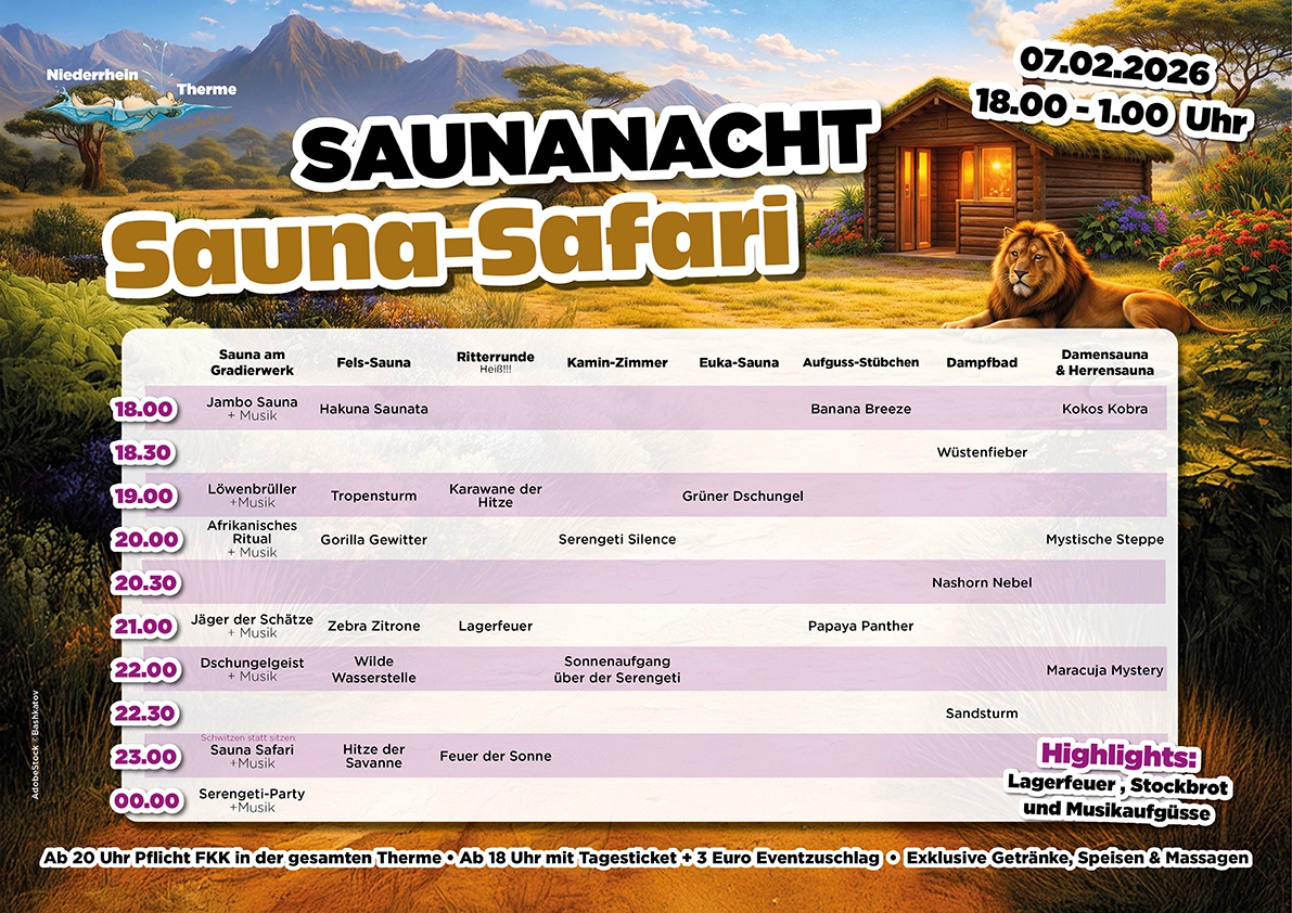 Willkommen zur ersten VIP-Nacht in der Niederrhein-Therme – das exklusive Saunaevent inklusive Partyzone im Wellenbad!